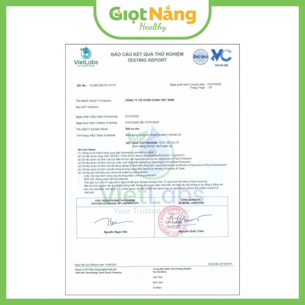 Đóng gói tại: ĐỊA ĐIỂM KINH DOANH CÔNG TY CỔ PHẦN GONA VIỆT NAM