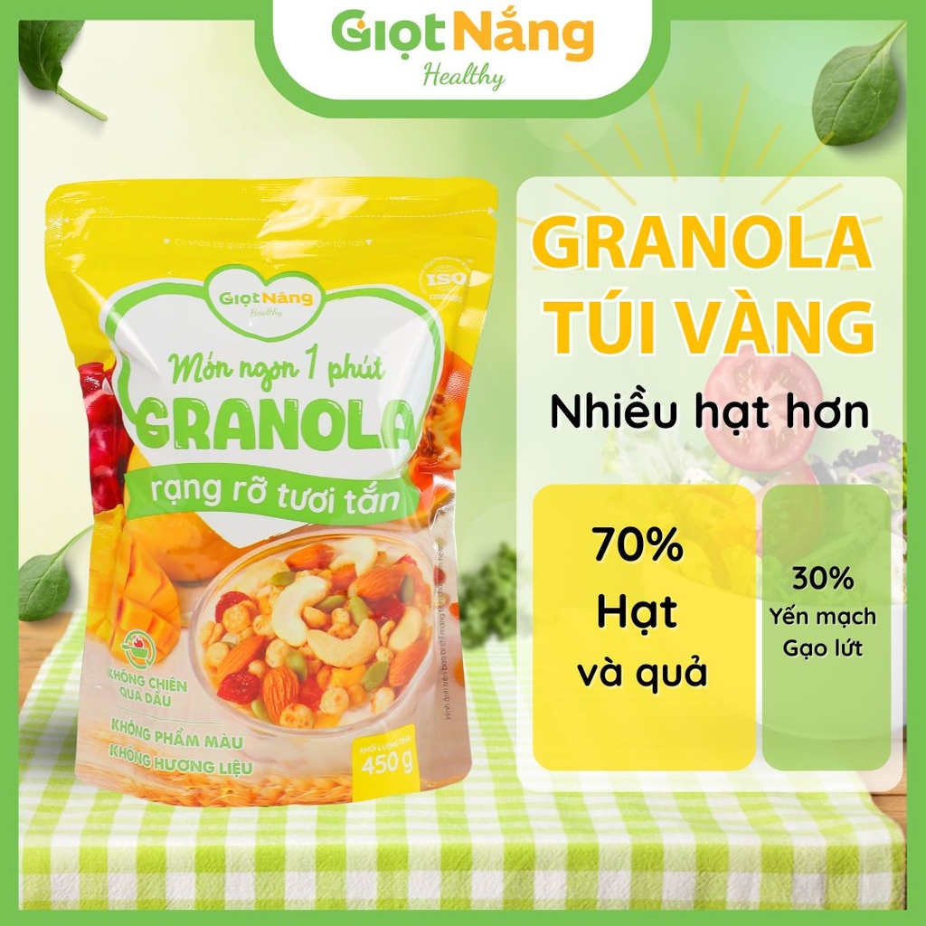 Granola Mới Túi Vàng Nhiều Hạt Ngon Giòn Với Viên Yến Mạch Trái Cây Mới Từ Nông Sản Giọt Nắng